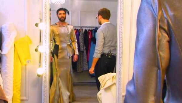Виталий не побоялся одеть роскошное платье, бюстгальтер и даже высоченные каблуки.