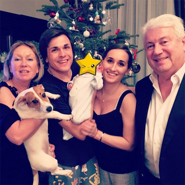 На опубликованном снимке балерина запечатлена вместе с супругом, новорожденным сыном, отцом, известным артистом Владимиром Винокуром, мамой Тамарой и любимым домашним питомцем Марни.