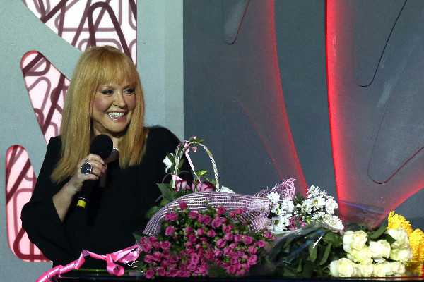 Алла Борисовна встречала гостей в коротком черном платье и высоких сапогах в цвет.
