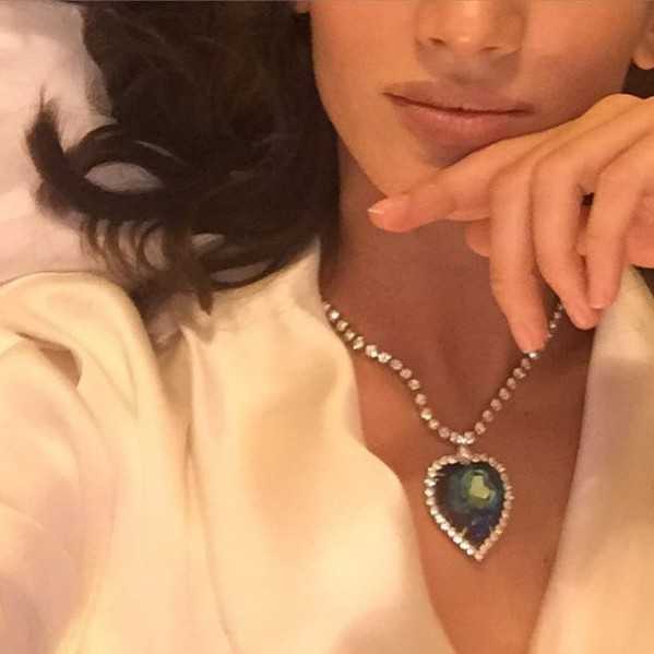 На снимке знаменитость позирует в классическом наряде, который разбавила украшением, похожим на легендарный кулон "Сердце океана" из фильма "Титаник". При этом снимок красавица подписала дерзко: "Держитесь подальше от тех, кто нарушает штиль в сердце океана".