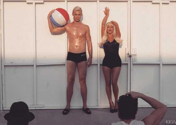 Тогда, 6 лет назад, Ким Кардашьян примерила на себя образ известной куклы. Вместе с манекенщиком она позировала для одной фотосессии. Стилисты соорудили на голове жены Канье Уэста объемные локоны и предложили Ким надеть на себя обтягивающий слитой темный купальник.