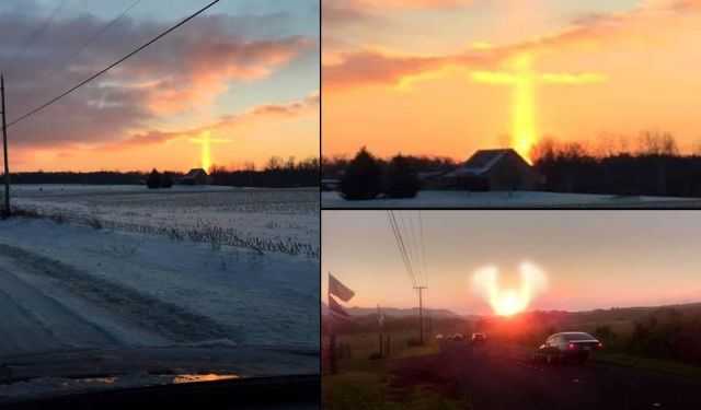 Второе странное явление наблюдали в городе Бьюкенен, штат Мичиган. Там, в свою очередь, произошло наблюдения необычного креста во время восхода в тот же день, 13 января текущего года. Возможно, мы тут имеем дело с редким наблюдением светового столба, который возник при восходе Солнца.