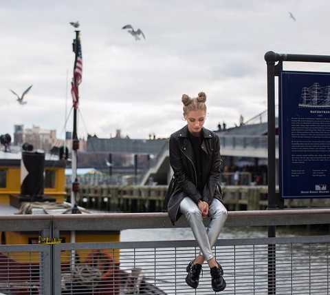 На своей странице в Инстаграм миниатюрная красавица опубликовала фото, на котором предстала с озорными гульками на голове, в «космических» брюках, кожаной куртке и блузе. Стоит отметить, что данный образ является довольно необычным.