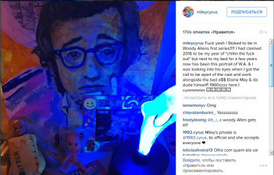 Это стало известно, после того как Майли выложила фотографию с Вуди Алленом в своем Instagram.