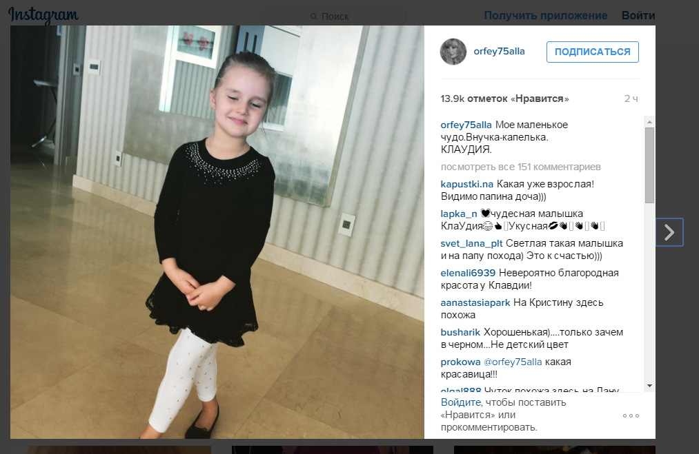 Певица очень гордится малышкой, она отдает своим внукам и детям всю свою любовь. Пугачева называет маленькую Клавдию "принцесской". Остальные ее внуки - самостоятельные, взрослые мужчины, а Клавдия - ее маленькое, беззащитное чудо. Многочисленные подписчики Аллы Борисовны умиляются, глядя на фотографии маленькой маминой копии, оставляя для нее приятные комментарии.