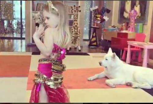 «С чего начинается мамино утро? Моё обычно с концертов», - подписала ролик Глюкоза. Оказывается, Вера уже давно посещает занятия по восточным танцам, и, нарядившись в традиционный костюм, решила порадовать зведную маму. 5-летняя девочка с легкостью исполнила танец живота, кружась перед камерой, при этом, не забыв про соответствующую мимику.