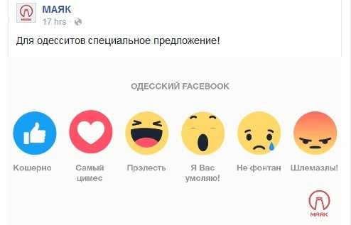 - Мне кажется, для русскоязычной аудитории Facebook не хватает кнопок "я тя уважаю" и "извини, братан, несмешно" - пишет одесситка Александра.