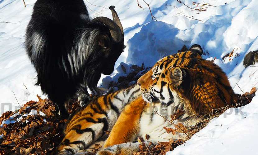 Рогатого питомца Приморского сафари-парка “насилу забрали” от полосатого друга.