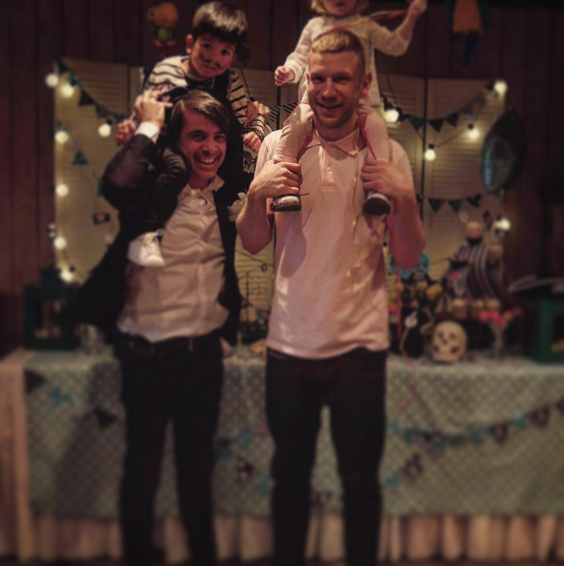 При этом Валид держит на плечах именинника Адама, а Иван – дочь Василису. Правда, малышка целиком в кадр не поместилась: на фотографии девочка заснята без верхней части головы. Судя по светлым локонам, Василиса похожа на папу.