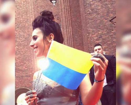 Фотография, на которой украинская певица Джамала запечатлена с перевёрнутым флагом Украины, появилось в сети . Снимок сделан на конкурсе «Евровидение».