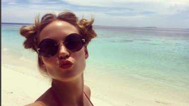 Российская певица Глюкоза (Наталья Чистякова-Ионова) удивила своих поклонников пикантным кадром с отдыха на Мальдивах. На снимке звезда позирует на пляже в костюме Евы, прикрываясь лишь ожерельем из экзотических цветов.