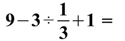 При правильном порядке действий необходимо сперва разделить три на одну треть (или умножить три на три), затем вычесть полученное число из девяти и прибавить к нему единицу. В результате вычислений получится единица.