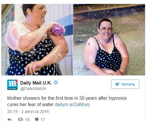 Женщине удалось побороть боязнь воды с помощью гипноза, пишет Daily Mail.