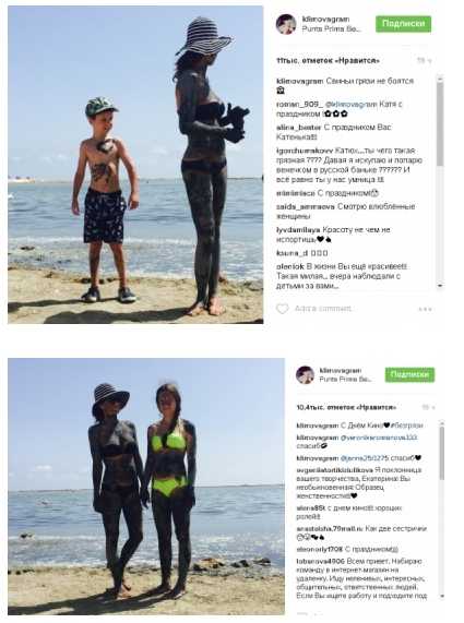 Сейчас красотка отдыхает в Испании и публикует в Инстаграм пляжные фото. На днях девушка предстала с дочерью и сыном, обмазанные грязями. Снимок Катя подписала с юмором: «Свиньи грязи не боятся». Поклонники в комментариях отметили красивую фигурку матери четверых детей и ее позитивные снимки.