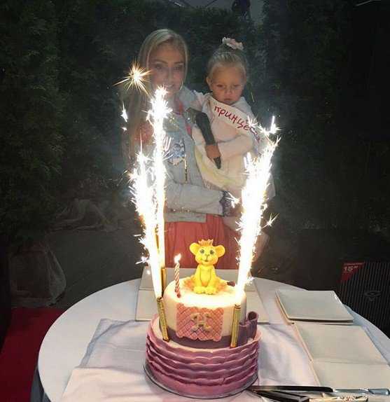 Татьяна опубликовала снимок, где она держит дочку на руках. Они смотрят на праздничный торт: на нем красуется фигурка львенка. Он также украшен буковой «Н» и искрящимися бенгальскими свечами.