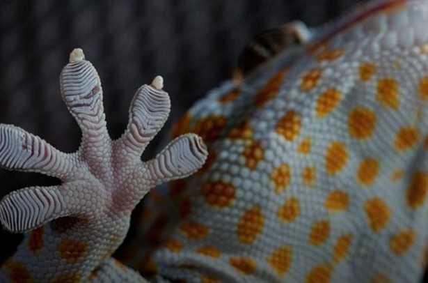 Лапки геккона покрыты огромным количеством щетинок, которые за счет особенности своего расположения, дают огромную площадь сцепления с поверхностью. Такая площадь порождает силы притяжения Ван-дер-Ваальса, которое удерживает геккона где угодно - на стекле, дереве и железе, под водой, в невесомости.