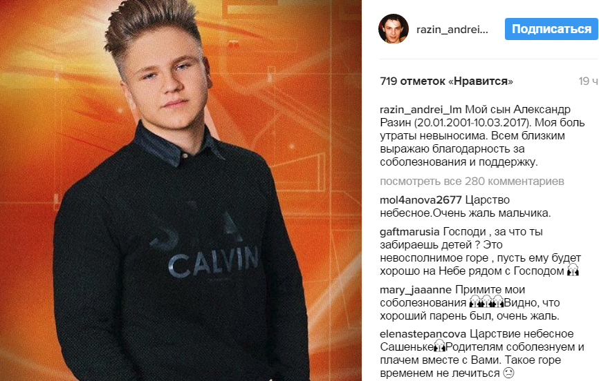 Напомним, 16-летний сын Разина скончался от сердечного приступа. Парню стало плохо, когда он гулял со своей девушкой. Та вызвала скорую, и врачи в течение двух часов пытались спасти Александра. Увы, безуспешно.