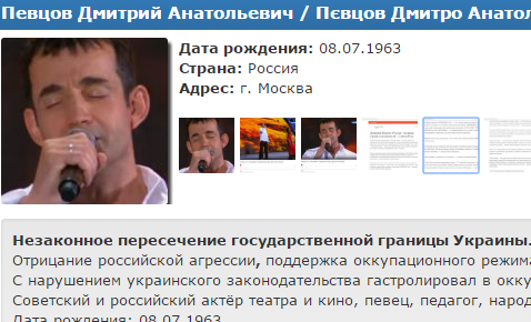 Список «Миротворца» пополнился еще одним российским актером Дмитрием Певцовым. До него на сайте, в котором публикуются досье тех, кто занимается антиукраинской деятельностью, было довольно много известных личностей. Давайте посмотрим, за какие поступки они туда попали.
