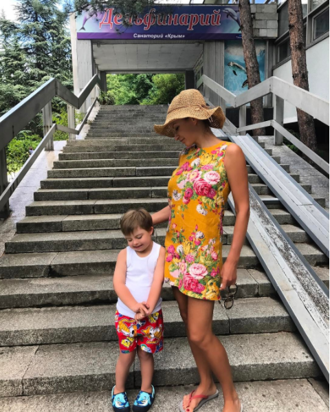 Сын актрисы Эвелины Бледанс Семен, который родился с синдромом Дауна, проходит дельфинотерапию.