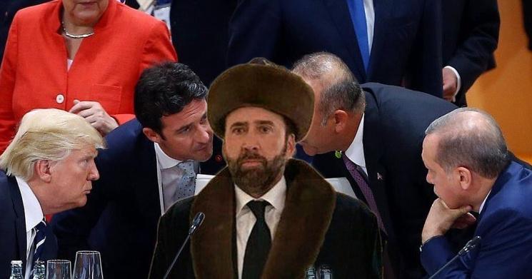 Соцсети тут же наводнили мемы и фотожабы. Кейджа поместили в самые разные ситуации - от сериала "Ходячие мертвецы" до саммита G20.