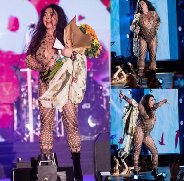 На музыкальном фестивале "Жара" в Баку певица Лолита Милявская появилась на сцене в прозрачном обтягивающем комбинезоне.