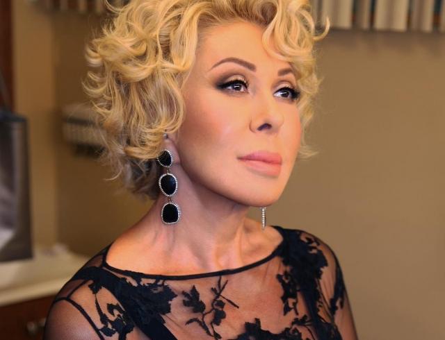 На фотографии Любовь Успенская предстала в кружевном платье с глубоким декольте, открывающим бюст. Образ звезды дополнил профессиональный макияж и сдержанная прическа.
