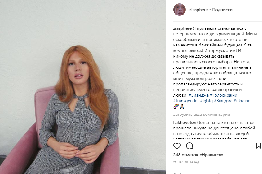 Певица завела себе аккаунт в Instagram, где написала, что к нетерпимости и дискриминации уже привыкла, но не собирается никому доказывать правоту своего выбора.