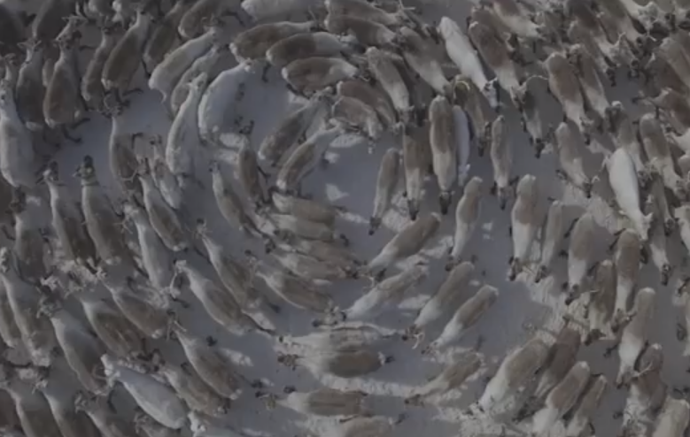 В сети появилось удивительное видео, на котором сотни оленей в тундре кружат в загадочном "хороводе".