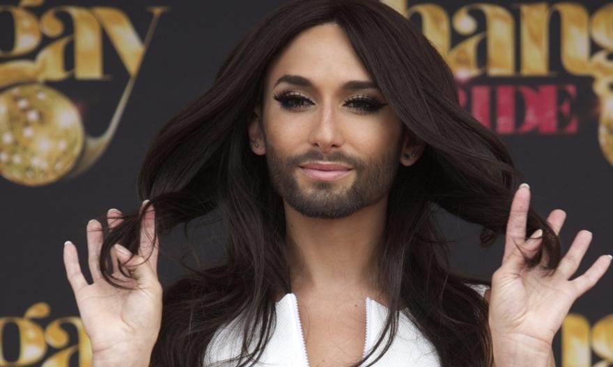 Справка Википедии : Том Нойвирт - более известный под женским альтер-эго Кончита Вурст — австрийский поп-певец и дрэг-квин. Победитель конкурса песни Евровидение-2014 в Копенгагене. Образ «женщины с бородой» был создан Нойвиртом в 2011 году. С помощью него певец стремится дать людям повод задуматься о природе инаковости, ксенофобии и о толерантности.
