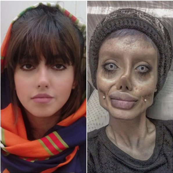 Несколько месяцев назад СМИ пестрили заголовками о том, что иранская девушка сделала 50 пластических операций и похудела до 40 кг, чтобы стать похожей на Анджелину Джоли. Результат ужаснул неподготовленную публику, ведь Табар стала похожа не на голливудсвую актрису, а на чудовище.