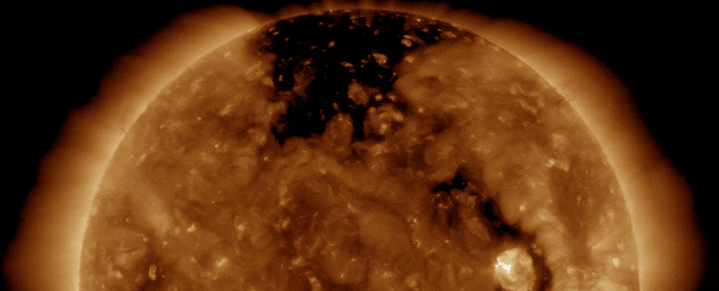 Сообщается, что ученые заметили в солнечной короне дыру приличных размеров. Геомагнитную бурю эксперты спрогнозировали на 13 сентября, когда поток солнечного вещества достигнет нашей планеты.
