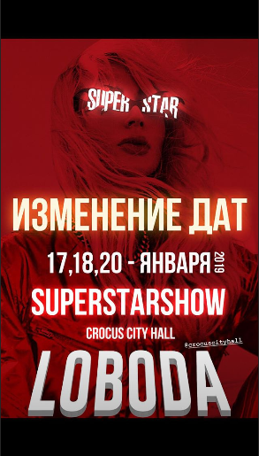 Певица сообщила, что концерты, запланированные на конец октября, переносятся на январь, все приобретенные билеты действительны на новые даты. Поклонникам, которые не смогут прийти на шоу, вернут деньги за билеты.