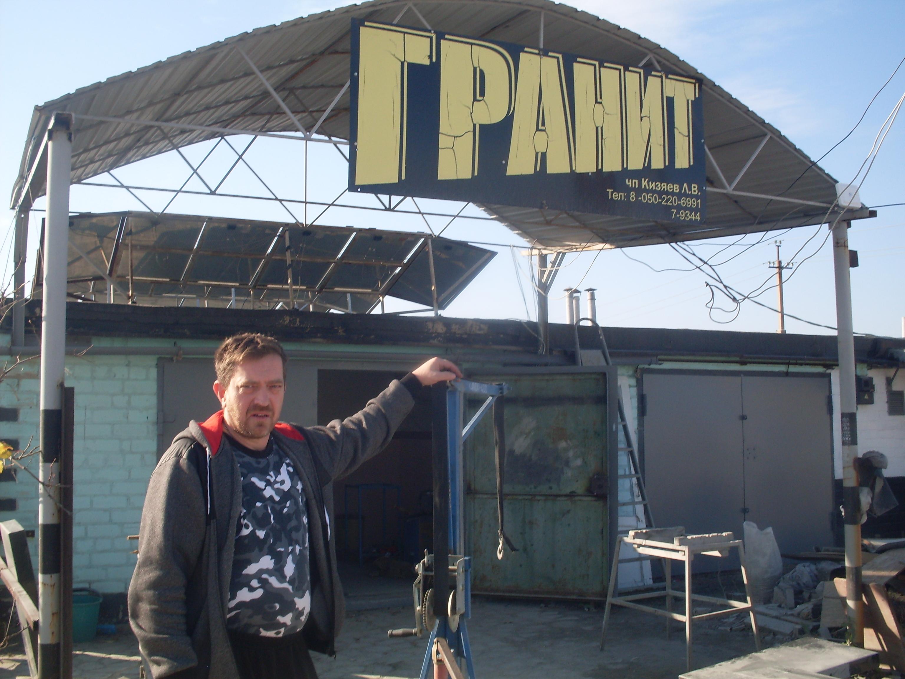 Встретил меня у мастерской с большой и яркой надписью «ГРАНИТ» ЧП Кизяев Л.В. двадцатилетний сын рубежанского умельца Валентин, который наглядно показал работу ветряка, а потом провел к отцу в мастерскую, которая состоит из трех комнат. Он также успел несколько слов сказать и о себе: в этом году заканчивает факультет механики, сейчас вместе с отцом работает над дипломной работой: «Модель аппарата бетономешалки производственного назначения». И помогает ему в этом 3D-принтер - единственный в городе, который также они с отцом сделали вместе.