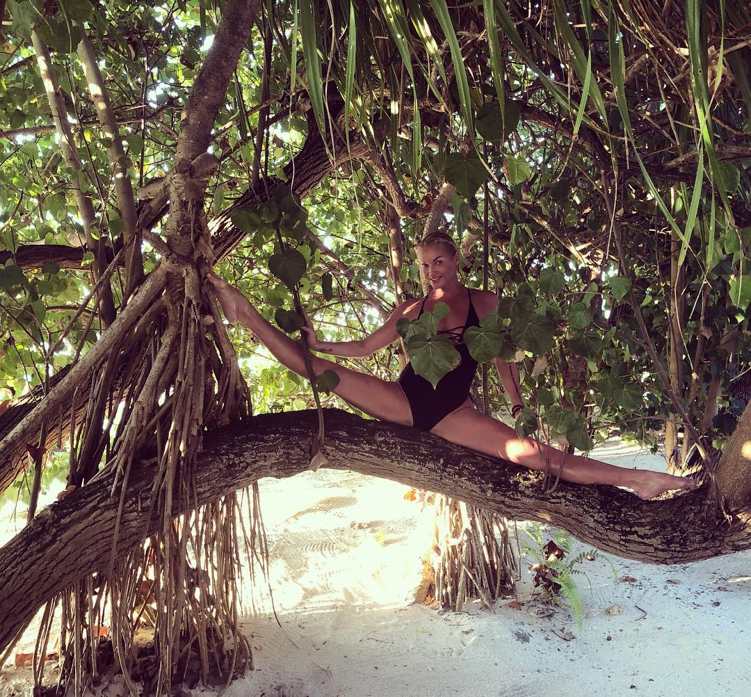 И пока поклонники гадают, всерьез ли Волочкова задумала переезд или просто шутит, балерина "слилась с природой" в джунглях. Она продемонстрировала свой фирменный шпагат на дереве, написав: "У меня тут сегодня таинственное новоселье!".