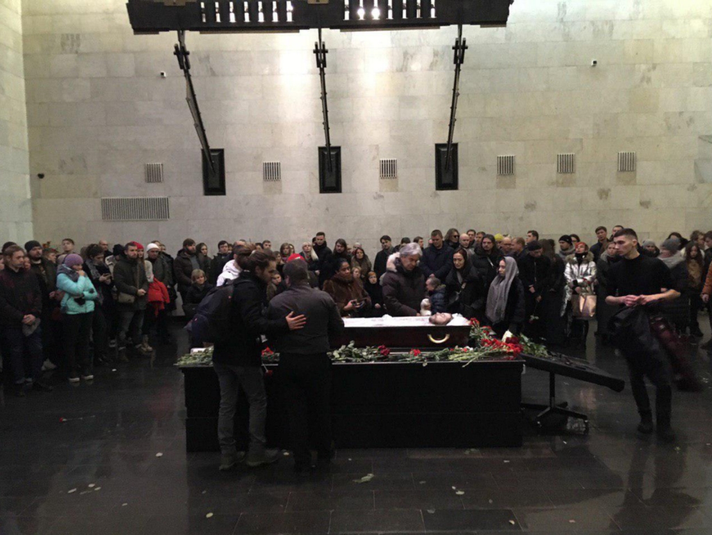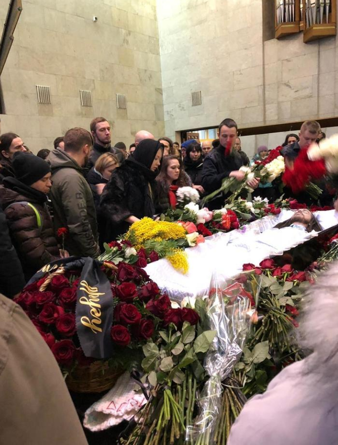 Гроб с телом исполнителя установлен в центре ритуального зала. Рядом собрались родственники и друзья, многочисленные поклонники несут цветы, передает Час Пик со ссылкой на российские СМИ.