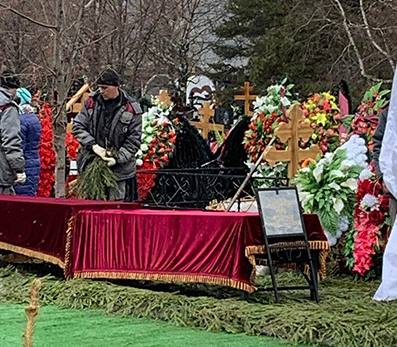 Во время, когда вынесли гроб, поклонники посвятили ей последние аплодисменты, которые так любила звезда. За катафалком последовала длинная траурная процессия. Белоснежный гроб, украшенный цветами, вынесли к могиле. Люди рыдали от горя и вырывали телефоны у тех, кто пытался сделать снимки. Над могилой растянули белый шатер, а землю устелили еловыми ветками.
