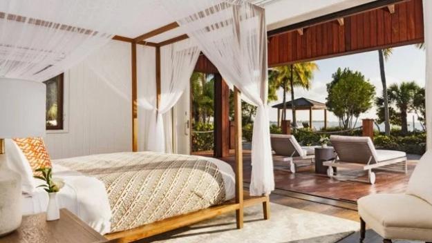 Площадь недвижимости, которую называют одной из самых эксклюзивных курортов на нашей планете, составляет 1250 квадратных метров. В доме разместилось 11 спален и 13 ванных комнат, меньшая половина которых расположена в главном здании, а другие – в гостевых бунгало.