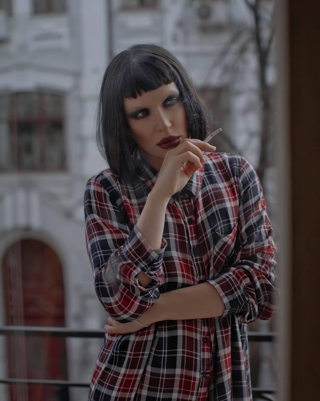 На снимках Монро запечатлена с сигаретой, в клетчатой рубашке на голое тело. В подписи к посту она рассказала о своем отношении к курению.
