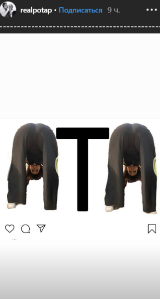 Спустя некоторое время Потап удалил публикацию, зато в его Сториз появился забавный коллаж, на котором согнувшаяся в три погибели Настя является частью аббревиатуры "ПТП".