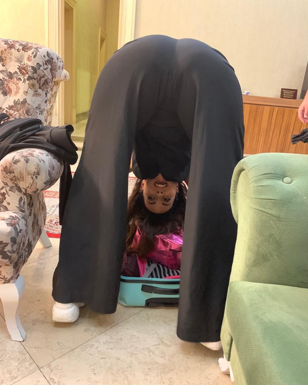 На снимке Каменских стоит, согнувшись, и собирает чемодан. С такого ракурса фанаты смогли во всех подробностях рассмотреть "пятую точку" певицы.