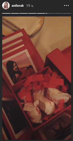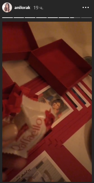 А в сториз Каролина выложила видео, как распаковывает подарок от киевского фан-клуба. Поклонники преподнесли артистке коробку с конфетами и ее фотографиями.