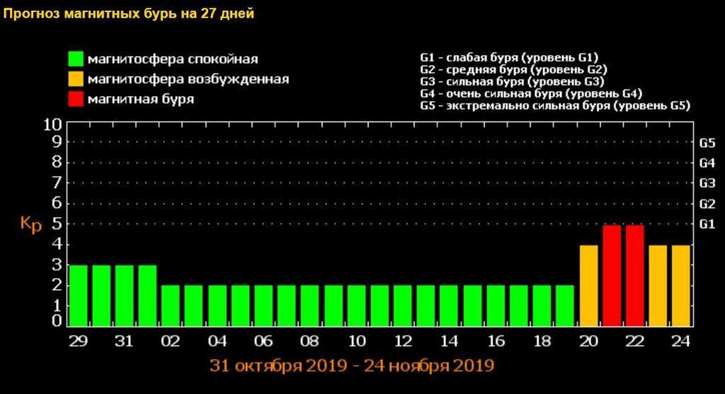 Исходя из данных лаборатории рентгеновской астрономии Солнца ФИАН, возбуждение магнитосферы начнется 20 ноября, а 21-22 ноября ожидается магнитная буря уровня G1. Ее отголоски будут ощущаться вплоть до 24 ноября.