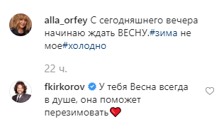 Певица Алла Пугачева пожаловалась на холода, но бывший муж Филипп Киркоров поддержал ее теплыми словами.