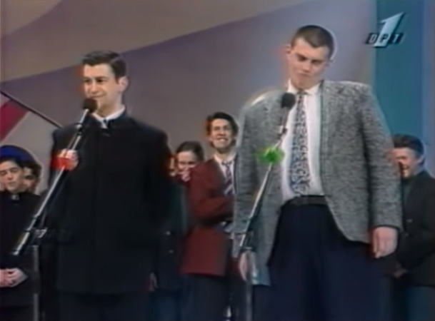 Сегодня в сети появились архивные фото и видео с Корявченковым. Как видно, на заре своей телевизионной карьеры Юзик еще не мог похвастаться своей "фирменной" внушительной фигурой.