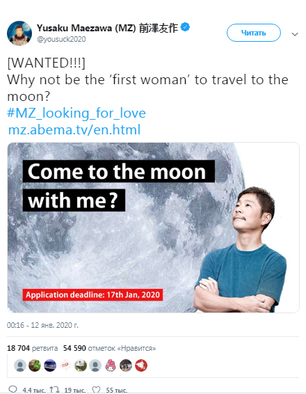 Полететь богатый японец сможет не ранее, чем в 2023 году. Однако спутницу он ищет уже сейчас, поскольку рассчитывает на то, что девушка станет не только спутницей в космическом полете, но и спутницей на всю жизнь.