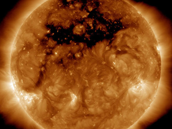 В солнечной атмосфере астрономы обнаружили огромное каньонообразное отверстие. Оно направлено в сторону Земли и извергает потоки солнечного ветра.