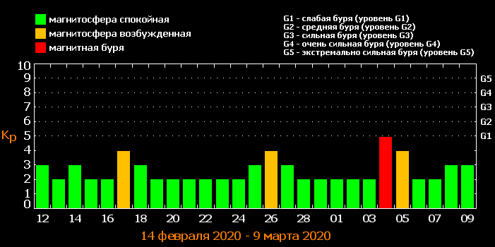 Возмущение магнитосферы будет ощущаться и на следующий день, 5 марта. А перед этим в феврале ожидается два скачка геомагнитной активности - 17 и 26 числа.
