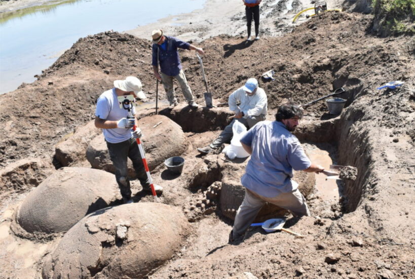 К месту находки прибыл археолог Пабло Мессинео и его команда ученых, чтобы исследовать окаменелости. Эксперты раскопали камни, которые были наполовину скрыты в грунте, и выяснили, что когда-то эти "валуны" были животными, древними родственниками броненосца - глиптодонтинами, которые жили примерно 20 миллионов лет назад и имели размеры с легковой автомобиль.