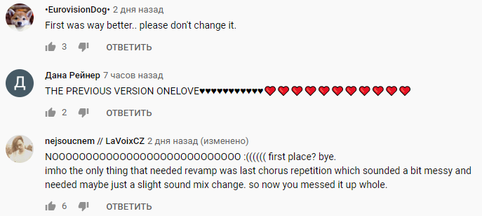 В комментариях на YouTube слушатели высказали свое мнение. Пользователи просят вернуть оригинальную версию песни и ехать с ней на "Евровидение".