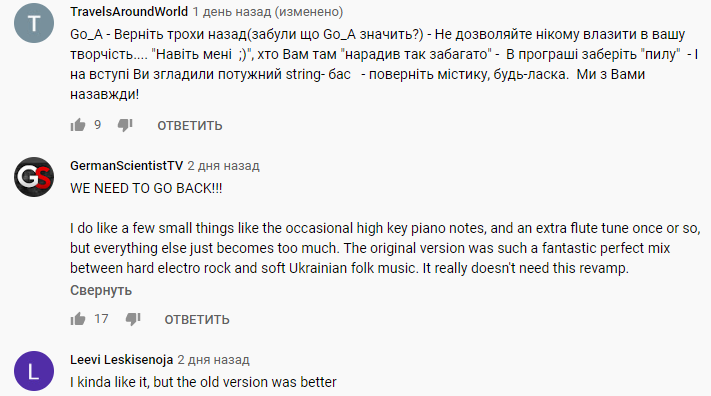 Обновленный трек, который группа создала совместно с продюсером и композитором Русланом Квинтой, понравился далеко не всем.